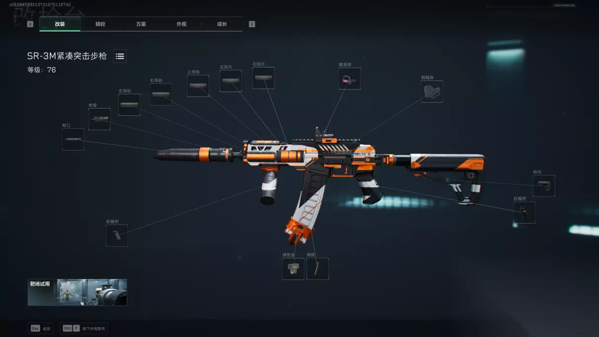 在近距离下,身体伤害为33.8,头部伤害为27,100米情况下打身体是13.5,头部伤害为16.9。其实伤害表现还可以,虽然不如常规突击步枪,但考虑到它的射速如此突出,都拿它当冲锋枪用了,这点射程伤害衰减也不是不能接受。况且,不会有人想用SR-3M打远距离的敌人吧? 所以,增加弹匣提升续航能力,握把注重加强后坐力控制能力,在中近距离下它简直是狠人专属武器。 【改装配件分析】