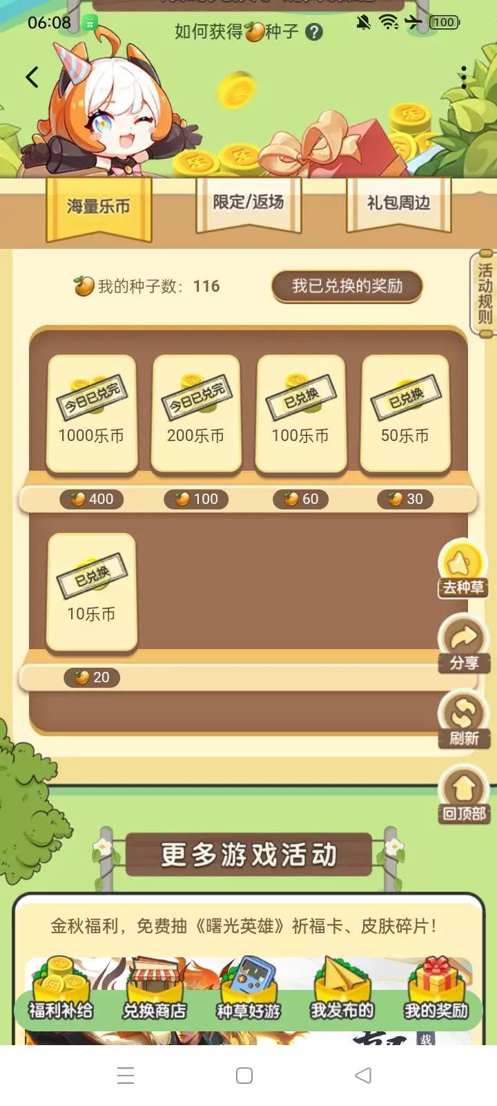 我真的是服了,每一次在早上6点来时都显示今日已对完 搞的我跟本兑换不到200乐币🙄这根本没有人能兑换到200的乐币😒🙄
