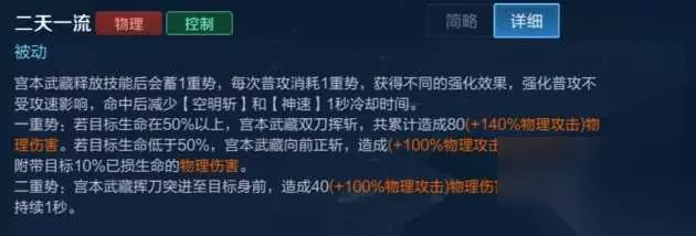 简单明了,就是放一二技能会给自身累计两层刀势,我觉得你现在玩好宫本最重点的就是要随时累积好两层被动,首先第二层是有一个小突进的效果和减速方便你更好的抓人 一瞬间突在脆皮身边他们交闪走了你还有二技能的位移跟大招的追击,可以完全粘死对面。一层刀势的斩杀效果也在这次更新中得到了加强(百分之二真的提升明显)加快了刷野的速度。刀势的普攻还会减少12技能的cd。 一技能