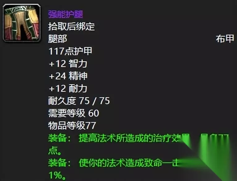 强能护腿对于懂行的联盟骑士来说必然要拿啊,不仅有暴击还有这恐怖如斯的77点治疗效果,更加难能可贵的是智耐精三花齐聚啊,就问哪里来那么好的东西,反正喵叔的德鲁伊和牧师都是300金币强势拿下强能护腿的。 十一:埃瑟利苏尔.惩戒者之弩