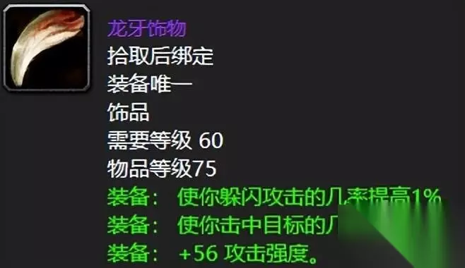 前中期无论如何都卸不下来的极品戒指,专注指环这东西得益于其命中以及不俗法伤,当然智耐双管齐下也是很全面的。就是掉率嘛有点感人,真的不常见好吧! 五:龙牙饰物