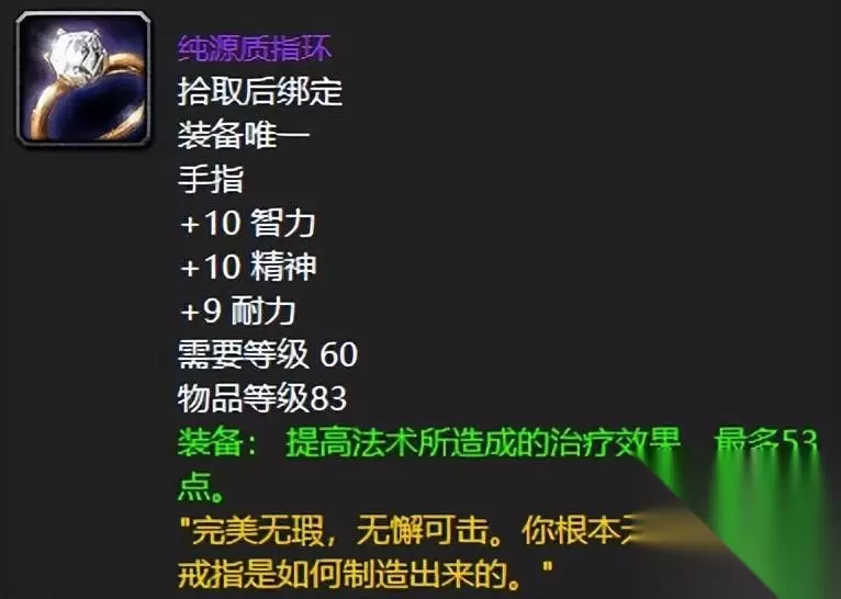 一颗永流传的黄灿灿的恢复宝石,可以说是治疗玩家穷极一生的梦想了吧。怀旧服的时候倒是有个很恐怖如斯的事情,据说有个极品团长拿安戈洛环形山的黄色水晶交易队友,直接黑了5000金币。不知道屏幕前的你是否有所耳闻。 四:专注指环