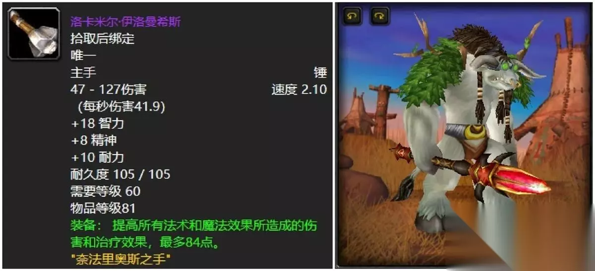 奈斧这东西兽人战士其实是非常值得入手的,无论是输出还是说T缺主手武器的时候,再者这东西我也不知道为啥,经常会出现无人问津的场面,所以捡漏也是常有的事。 十七:洛卡米尔.伊洛曼希斯