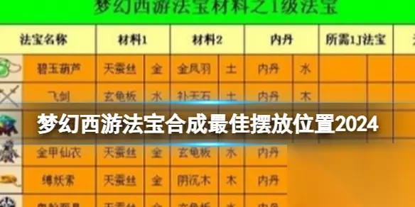 梦幻西游法宝合成最佳摆放位置最新的在哪里?游戏中的法宝合成要怎么摆放才会变成最佳最厉害的?很多玩家不了解,下面就跟着小编一起来了解一下梦幻西游法宝合成最佳摆放的位置吧。