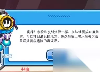 4、最后玩家们若是想使用高压水枪就需要找到角度。这个角度分别是44、45都可以,然后玩家们就会获得这个喷水套装。