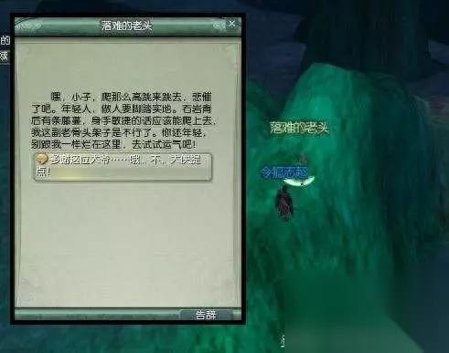 意外失足莫惊慌,落难老头帮你忙!在石台下面的糟老头会给你指一条回去的明路。