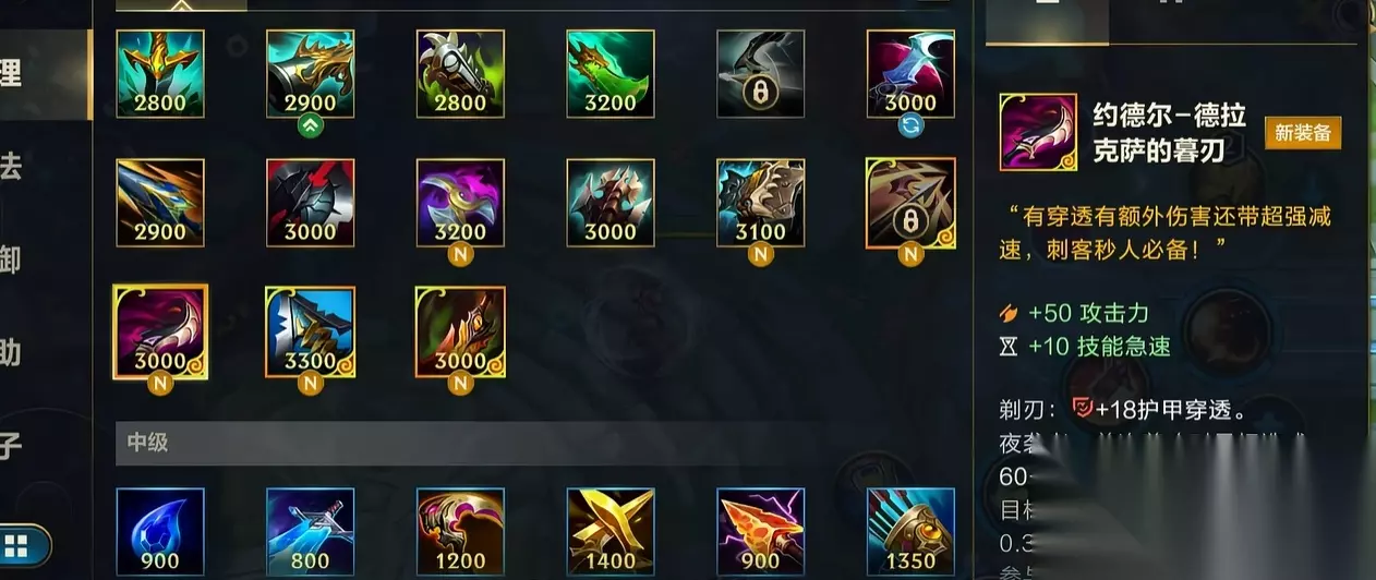 第二件约德尔幕刃,也是原有属性不变的基础上,新增击败敌人会获得一秒的隐身和百分之六十的移速加成。连续击杀不能刷新此效果,有五秒的冷却时间。