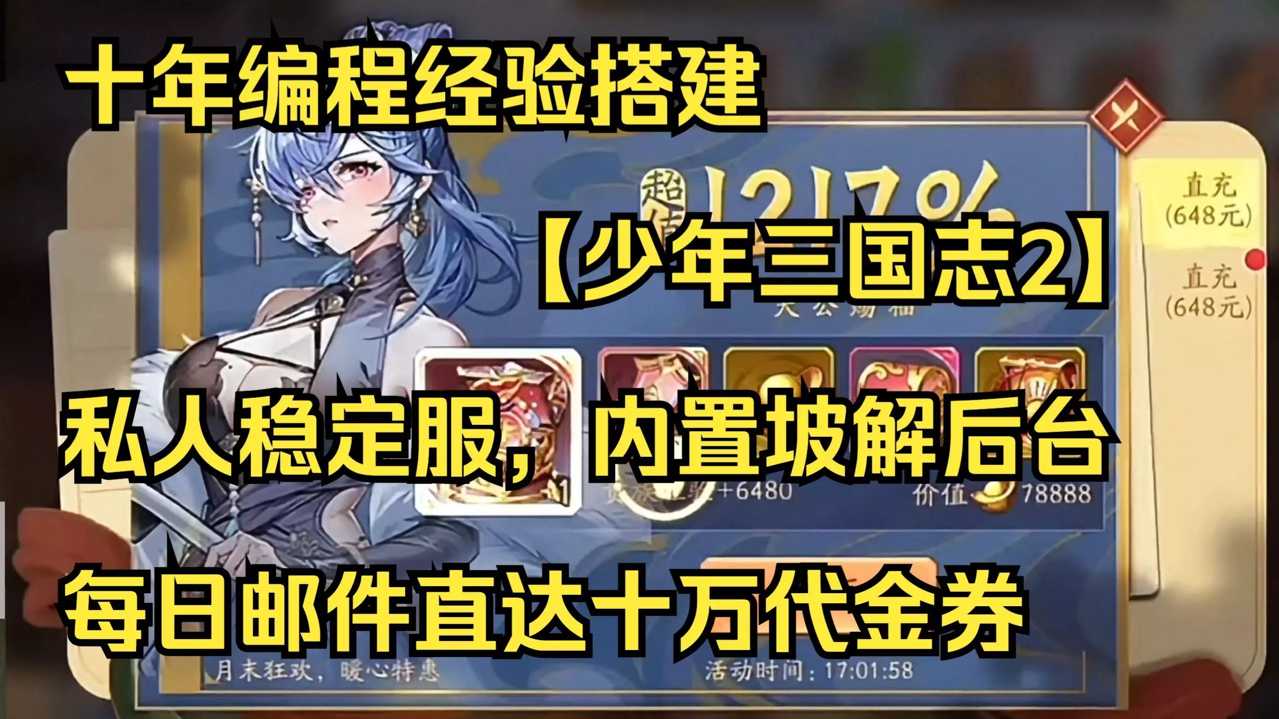 《少年三国志2》私人稳定服福利上线,该服活动同步官服,内置破解后台,每日邮件送十万代金券,还可在奇珍商店兑换十面埋伏碎片等道具,助力玩家拉满虹金战法,快速成长变强。