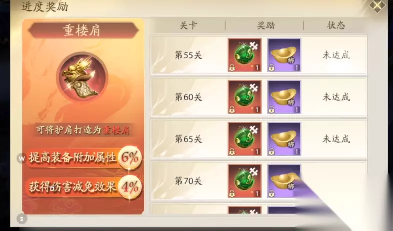 大家若是使用它的话,需要注意属性的搭配,并且升级和精炼也是关注的点,把重楼肩升到高级能够带来更高的属性加成,而精炼则能让属性不受削弱的影响,当然了大家还能利用传承效果来把其属性传递到全新装备中,如此也能激活套装效果。