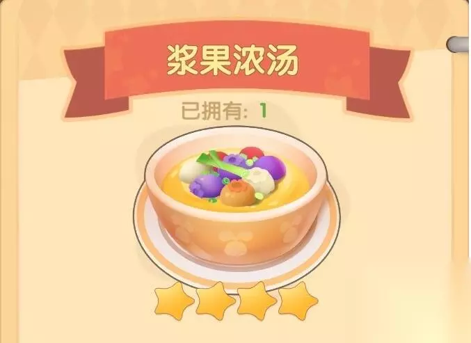 橙色浆果作用: 1、烹饪材料: 制作各种料理,用来制作浆果捞和浆果浓汤 浆果捞配方:白色浆果2+红色浆果1+橙色浆果1 浆果浓汤配方:红色浆果3+橙色浆果5+香蕉5+牵牛花1