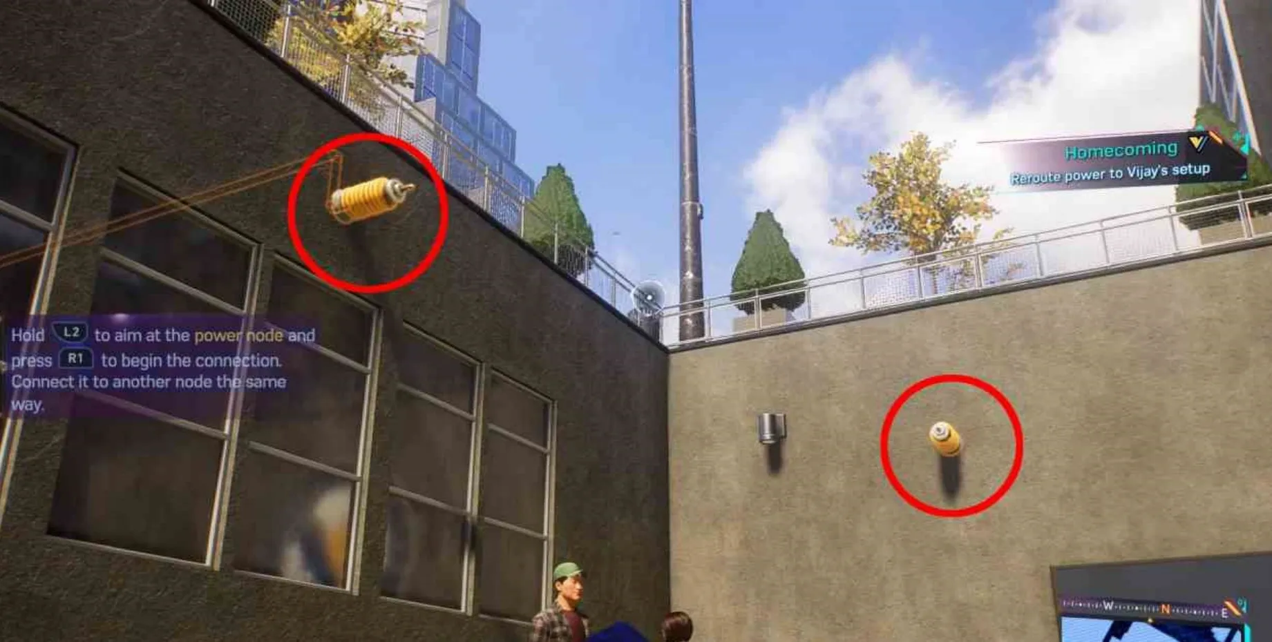然后回到任务提供者身边。在任务提供者旁边,你必须爬上屋顶才能找到一台发电机。