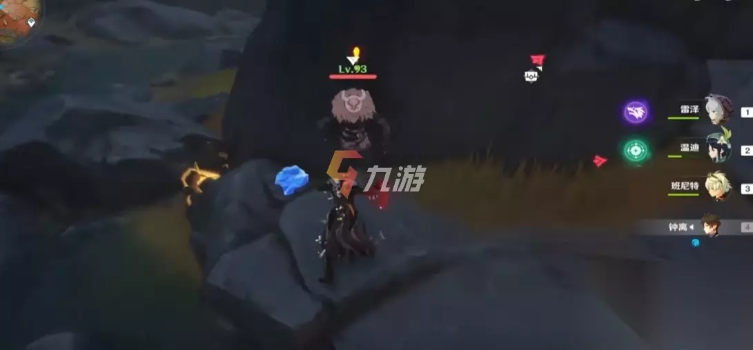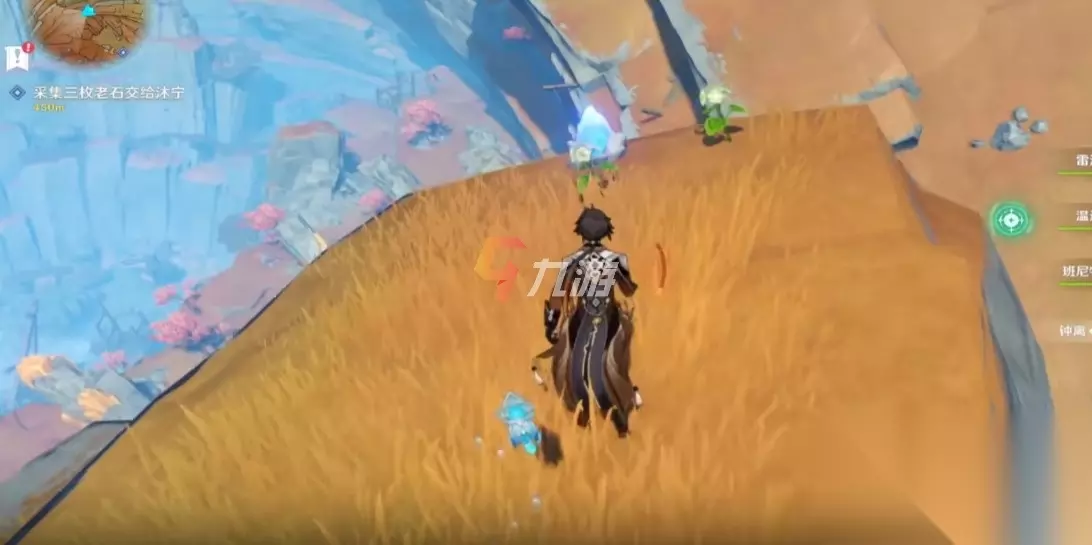 6.这处的老石就不那么容易找到的了,在琉璃峰图标文字的最下方,靠左一点的地方。最好是有钟离和温迪。