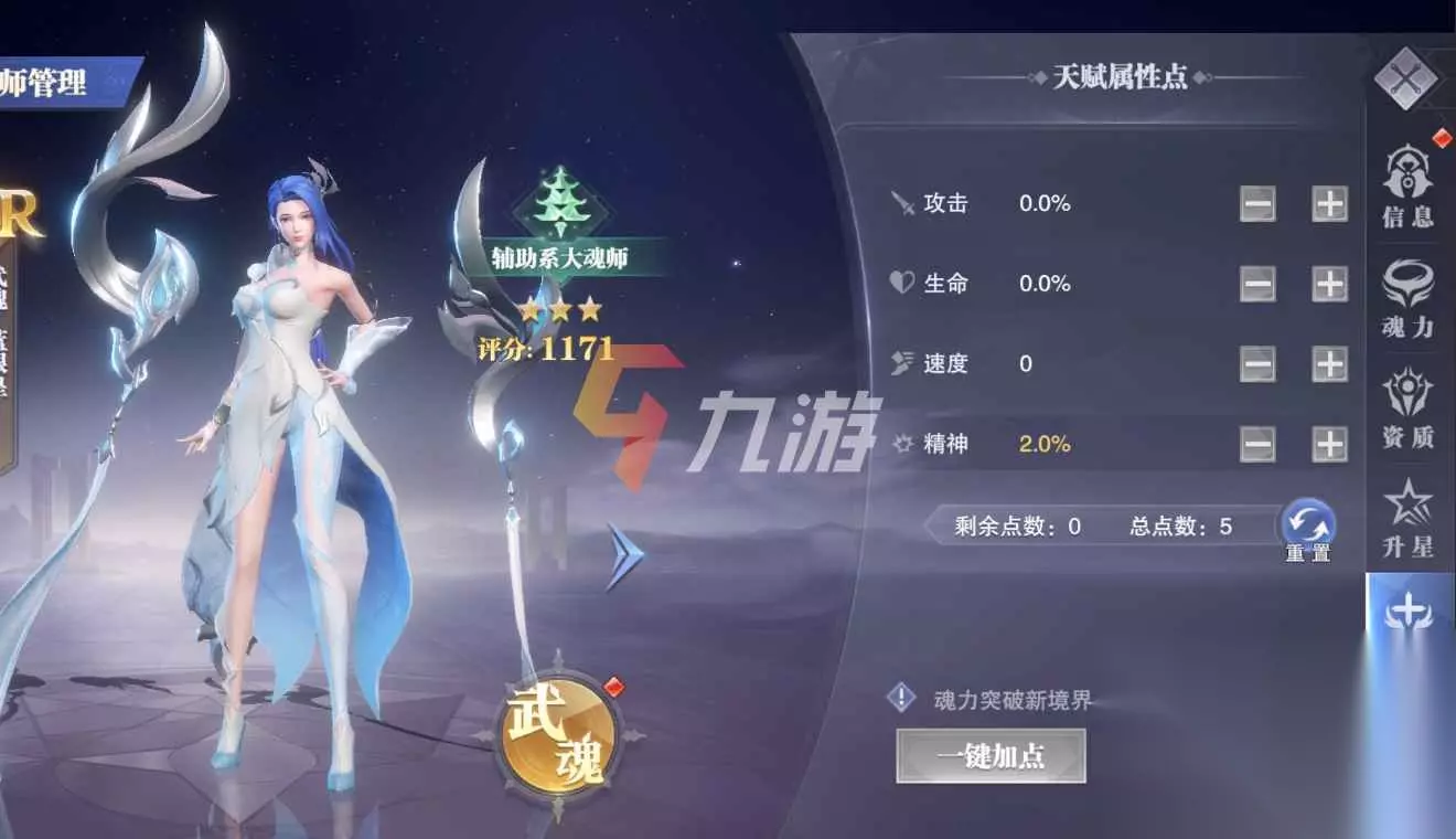 游戏内的火舞主加精神以及生命值即可,毕竟自身作为辅助角色,不需要有很强大的输出能力。精神可以保证自己的技能控制率,保证对面即使有着独孤博这种自动降低我们精神力的角色,也不会出现技能miss的情况。