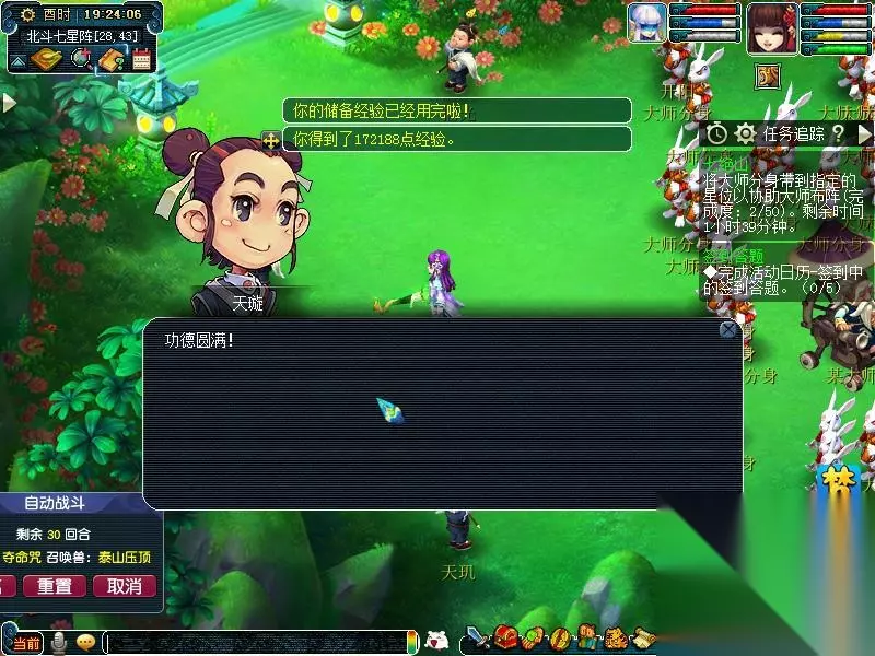 寻仙包裹物品栏最后一排怎么开 开包裹一共5个任务,宁海2个,石塘一个,京城2个,分别是宁海的破烂王,布衣大仙,食堂的金角,京城的银角,黄道姑(去京塔那个城门口)。你那个任务的任务没做啊 新寻仙琴棋书画称号怎么做 八景是找齐天烈后面的房子里的如烟,给你一只笔,飞京城广场然后右键道具,获得八景。 诗是在齐天烈附近刷新npc滕公子,点他获取道具,(腾公子是个不安份的家伙,他到处跑,所以这个有时要等很久)道具齐全以后到紫岚仙府,找到逍遥圣君和乔伊梅分别交任务获得获得两个称号 新寻仙,现在有多少个称号,有多少个隐藏称号,具体说一下任务名字 哇,你要这么说现在能有600个左右的称号了,隐藏任务也不多你可以上网找一找,我知道的山海县有2个需要声望够才能做的称号,然后就是最近刚出的在石塘小桑村舍身台京城广场有隐藏称号,京城广场还有一些剧情任务给称号,建议您将所有的不是副本或者重复的可接任务都完成 寻仙,京城猎苑,是什么时间,需要狩猎多少级 猎苑狩猎20级以上活动时间活动内容活动地点10:00黄九进犯宁海县兰陵道10:30猎苑狩猎宁海猎苑,石塘猎苑,京城猎苑。12:30猎苑狩猎宁海猎苑,石塘猎苑,京城猎苑。16:00黄九进犯宁海县兰陵道19:00-21:00夺回粮食宁海县,石塘县19:00猎苑珍奇京城猎苑20:00黄九进犯宁海县兰陵道20:30猎苑狩猎宁海猎苑,石塘猎苑,京城猎苑。21:30猎苑狩猎宁海猎苑,石塘猎苑,京城猎苑。 OK,本文到此结束,希望对大家有所帮助。