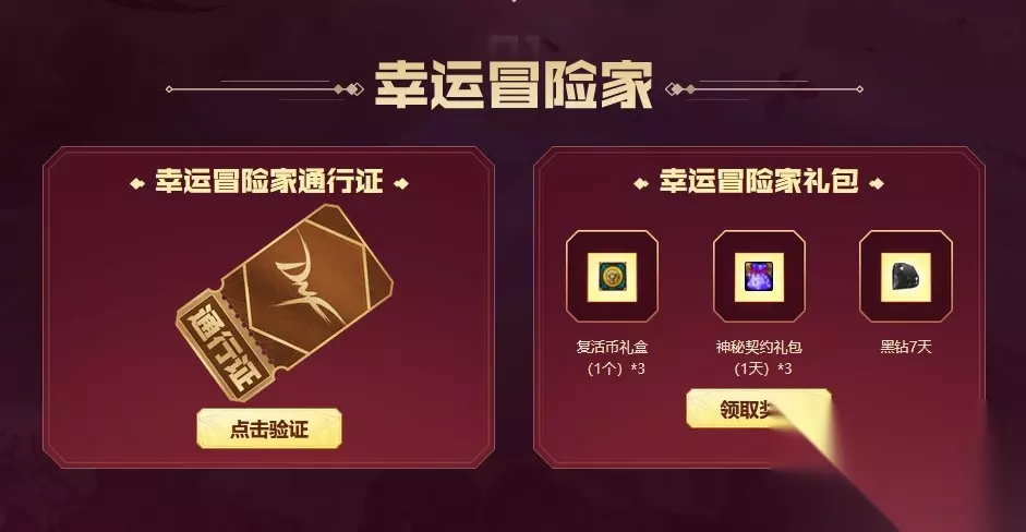 活动时间:9月22日起 - 未知(跟随通行证时间) 活动内容: 1、在活动页面验证幸运冒险家通行证之后,即可领取幸运冒险家礼包。若没有幸运冒险家资格,则无法参加该活动。
