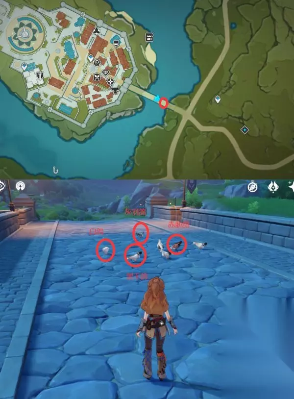 t15_2-t15_1:10.0 标签: 动物 《原神》中的四方八方之网可以用来捕捉小动物,那么图鉴中的小动物都要在什么地点捕捉呢?请看下面由“不服输的泡泡”带来的《原神》四方八方之网捕捉小动物点位汇总,一起来看看吧。 使用队伍配置推荐:早柚(必带)+埃洛伊(必带)+钟离+凯亚 禽鸟 1、白鸽+灰羽鸽+赤胁鸽+黑王鸽(蒙德城桥头)