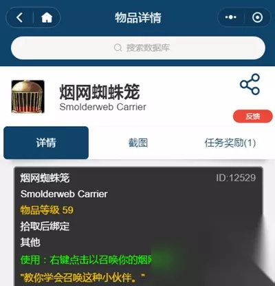 烟网蜘蛛:黑石塔BOSS烟网蛛后掉落。