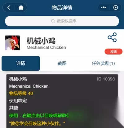 西部荒野小鸡:隐藏的一个宠物,在西部荒野对着中立小鸡不停的/小鸡,在小鸡变为npc状态后交给小鸡一份鸡饲料就可以获取。 收集党千万不要错过了这些稀有宠物,另外大家打到以后千万不要随便丢给NPC了,说不定你就错过了一大笔收入呢!