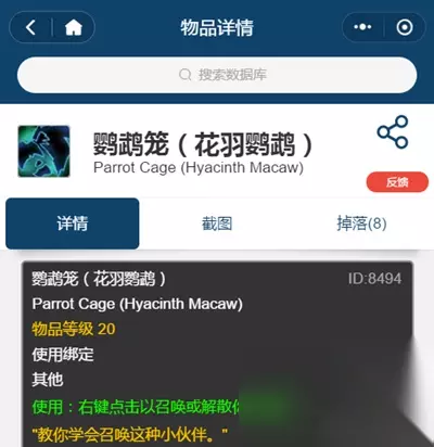 花羽鹦鹉:荆棘谷的人形生物都可掉落,也是唯一一只紫色的宠物,绝对极品宝宝。