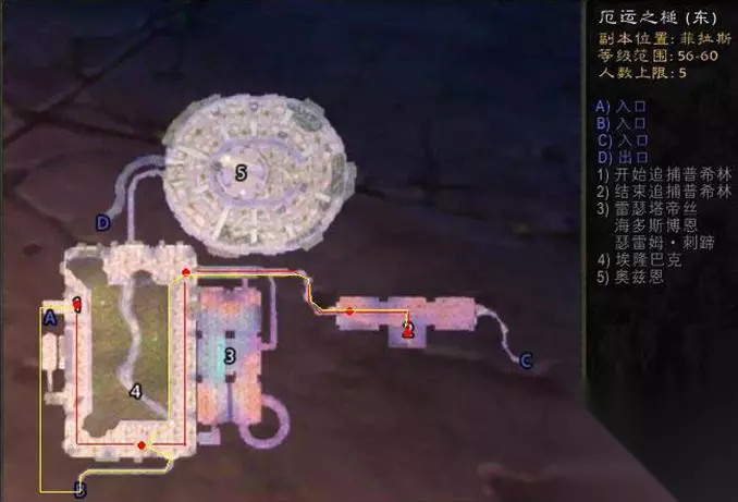 注:红点为小鬼普希林所在地,需要对话的地方。 入口C在部落营地上方那个亭子里,入口B在进入厄运竞技场前面大门右拐尽头。 红线为对话、小鬼逃跑顺序。 1 为启始、 2 为最终决战地。 推荐大家在厄运综合频道组建一支钥匙队,五个人很轻松就能完成。 为大家推荐:魔兽世界厄运之槌钥匙任务怎么做-厄运之槌钥匙任务攻略 关于魔兽世界怀旧服月牙钥匙获得方法小编今天就为大家讲解到这里,希望大家能够喜欢,更多的精彩游戏资讯请关注233乐园下载站,这里有最新的热门游戏资讯。