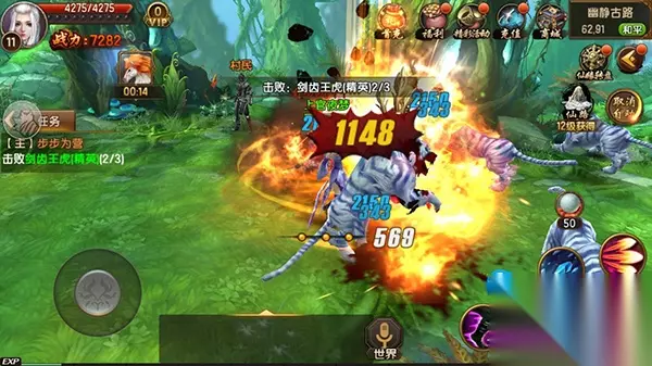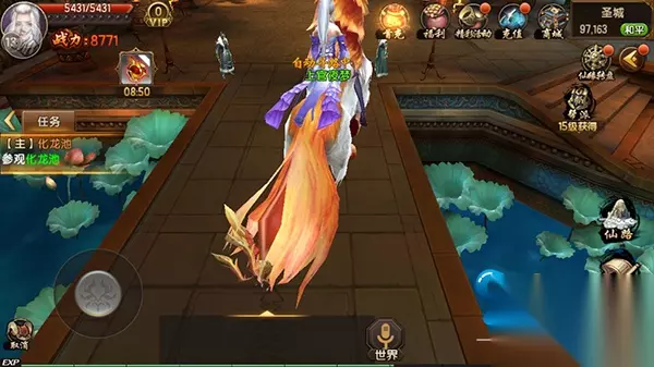 游戏画面:8.5分 2.5D的画面,依托古代修仙神话为背景,游戏画面恢宏壮丽,人物个性鲜明,色彩风格艳丽,场景逼真,初入游戏创立觉色界面人物造型华丽。游戏打斗的场景,武器装备附带的光效以及人物释放出的技能特效气势滂沱。玩家还可以随意拉伸画面观赏高清仙侠世界。