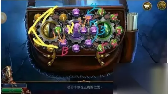 第十步:最终旋转 将中央圆圈上的叶子图案旋转到交叉口B处。然后,进行以下旋转:右侧圆圈顺时针旋转1次,中央圆圈逆时针旋转2次,右侧圆圈逆时针旋转1次。 恭喜你!按照以上步骤操作后,你应该已经完成了转珠子关卡! 祝你游戏愉快!