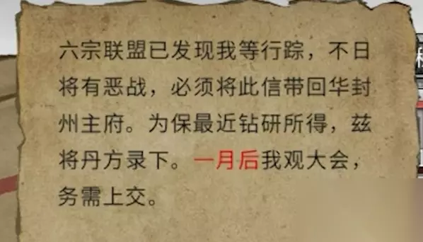 6、拿走丹鼎后,他送了我们一个丹方,打开得知一个月后观内会举办大会。