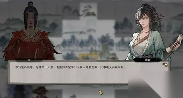 2、师青表示需要观内交出大鼎,否则就会带人攻打。