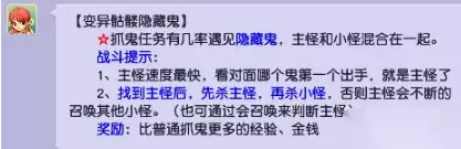 1.变异骷髅怪造型的隐藏鬼;第一回合防御,第二回合点杀第一回合第一个出手的变异骷髅怪后再击杀其他变异骷髅怪即可。