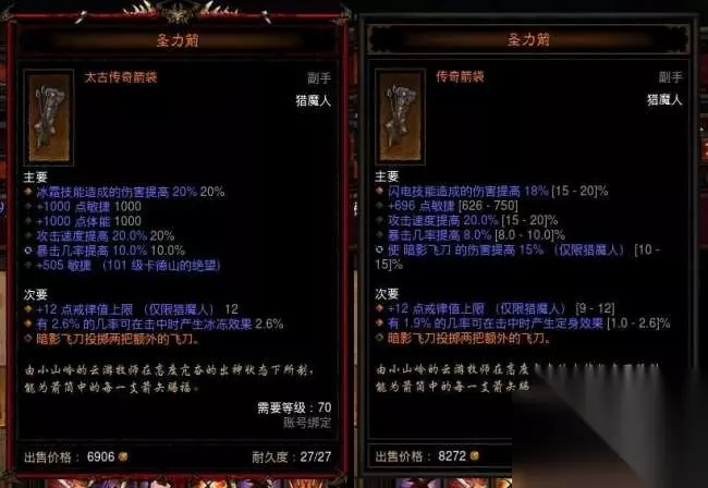 开出左边的箭袋会让你开心一整天吧 其实这和摸奖的形式有点像,你在开奖(鉴定)的时候会有一种期待和些许不安,在完成鉴定后则会有随之而来的惊喜或是失望,这对游戏来说是十分重要的。其实所有的刷刷刷游戏的本质都可以看成是玩家去到一个地点→完成一个事件→获得一个奖励如此循环,不同游戏之间的区别便是在这个过程中是否可以让你有着惊喜感和成就感,而鉴定这项动作无疑是最好的选择。 游戏的背包 相对于暗黑2来说,暗黑3的背包已经算是比较耐用的了,因为暗黑3的装备不像暗黑2那样会占很大的格子,所以这里我们拿暗黑2做例子会更合适一些。