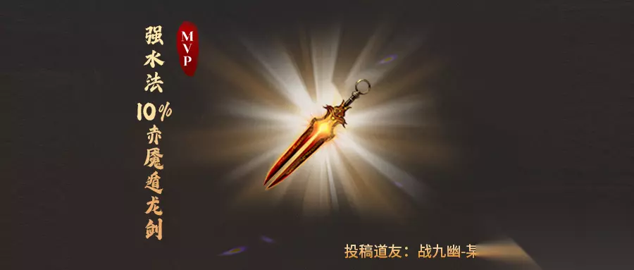 今天的牛装都有极品绿属性! 强水法伤害10%、概率躲避攻击29%、 强力冰冻29%, 究竟哪件牛装能斩获MVP呢? 快一起往下看看~ 大神点评 强水法10%的赤魇遁龙剑 战九幽-某道友 接近完美的法水武器!