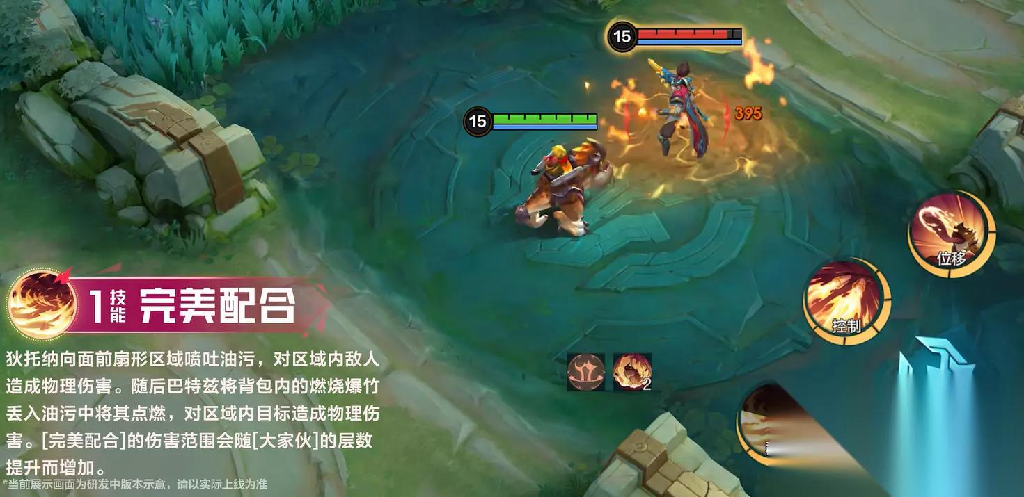 技能解析:体型越大,威力越猛! 一技能:完美配合(主输出/叠被动) 向前方挥击,造成两段伤害(可叠加两层被动!)。 被动联动:你的体型(被动层数)直接扩大此技能的伤害范围!层数越高,横扫千军! 使用要点:近身爆发+快速叠层,配合践踏减速打满伤害。 二技能:导弹(团控/聚敌) 发射导弹至目标区域,造成伤害和减速。落地后触发二次火焰喷发,将范围内敌人强力拉扯至你身前! 战术意义:开团神技!强制位移破坏阵型,把敌人拽到队友火力网中,或为三技能吞人创造机会。 三技能:狄托纳的热情(单点强控/复活增益) 蓄力冲锋:免疫控制!命中首个目标将其吞噬压制,持续控制后吐出。 撞击眩晕:若吐出目标撞到敌方英雄或墙体,引发范围爆炸伤害+群体眩晕! 复活神技:学会此技能后,每次复活立即获得4层被动!快速重回战场核心。 使用精髓:单体点控关键目标(如C位),或制造撞墙眩晕连锁控制。 大招:终极吞噬(战场分割/斩首行动) 强化版吞噬!长时间压制一名关键敌人(无法被解救),结束后将其吐到指定位置(通常是队友脸上)。 战略价值:强行制造多打少局面,集火秒杀敌方核心输出或主坦。