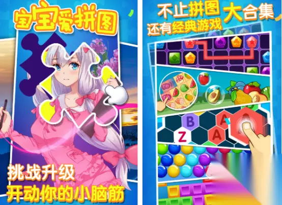 这款适合宝宝喜欢的拼图游戏中,可以看到一些动画片当中的经典形象,包括小猪佩奇以及各种真人小动物等,可以在玩的过程当中锻炼脑筋,也有众多的图片合集内容。如果不想玩拼图游戏的话,在这款游戏中还集结了更多的经典游戏,比如消消类型的游戏或者是泡泡龙等,只需要通过点击屏幕的方式就能开启游戏。 高速下载 普通下载 优先233乐园APP下载 5、《拼图大闯关》
