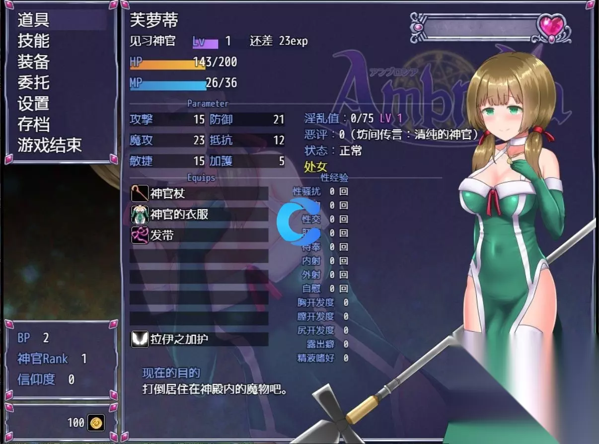 《永生之物》巫女适性怎么刷 答:触手,盗贼,战败,是比较可靠的方法。 让触手喷:沐浴100次(隐藏数据),嗜好50,嗜好100,分别提高适性5,10,10点。 找盗贼:触发骚扰(带上少女项链保护衣服):触摸80,接吻50,开发50(×3),开发100(×3),分别提高适性5,5,5(×3),10(×3)点。 战败(森林,洞窟不会丢纯洁):5次,20次,分别提高适性10,10点。 纯洁和错误的判断对情节没有太大影响,它们没有多大用处。你不需要成为巫女。维持这些改进的巫女适应性只会增加成为巫女的难度,这是一个更具挑战性的游戏玩法。 根据版本的不同,可能会有一点误差,如果还是不行就拿露出来凑一凑,找一个野怪刷在凑一凑就可以了。