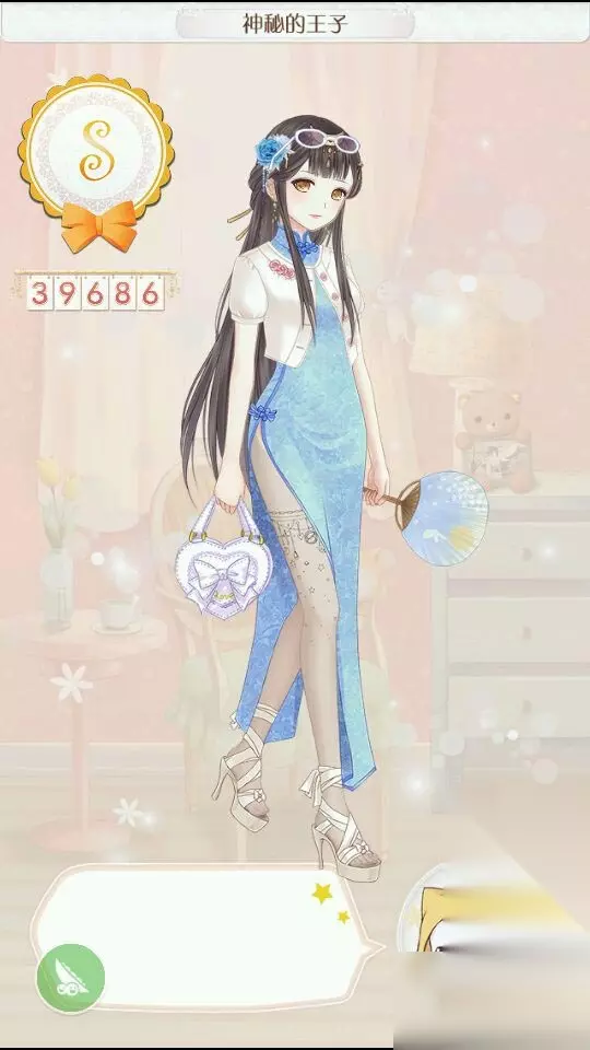神秘的王子 头发:掌上明珠 连衣裙:清水芙蓉(这里用普通旗袍的话是A) 袜子:甜心草莓酱 鞋子:粉色樱花 饰品:冰晶头箍、糖蝴蝶、雪精灵、花露、太阳眼镜(这个貌似蛮重要的)