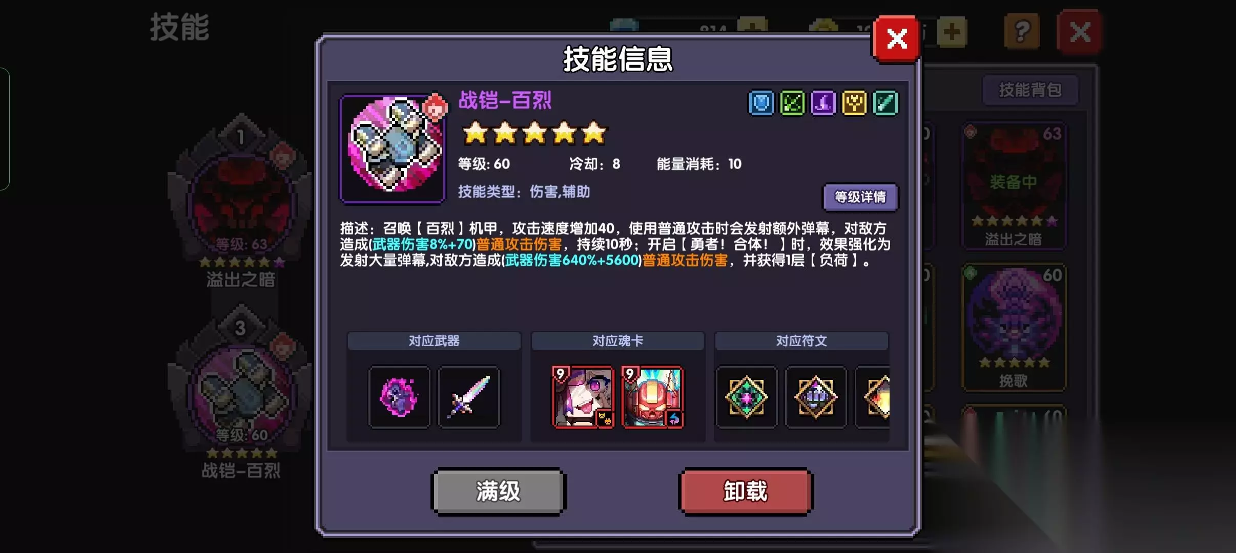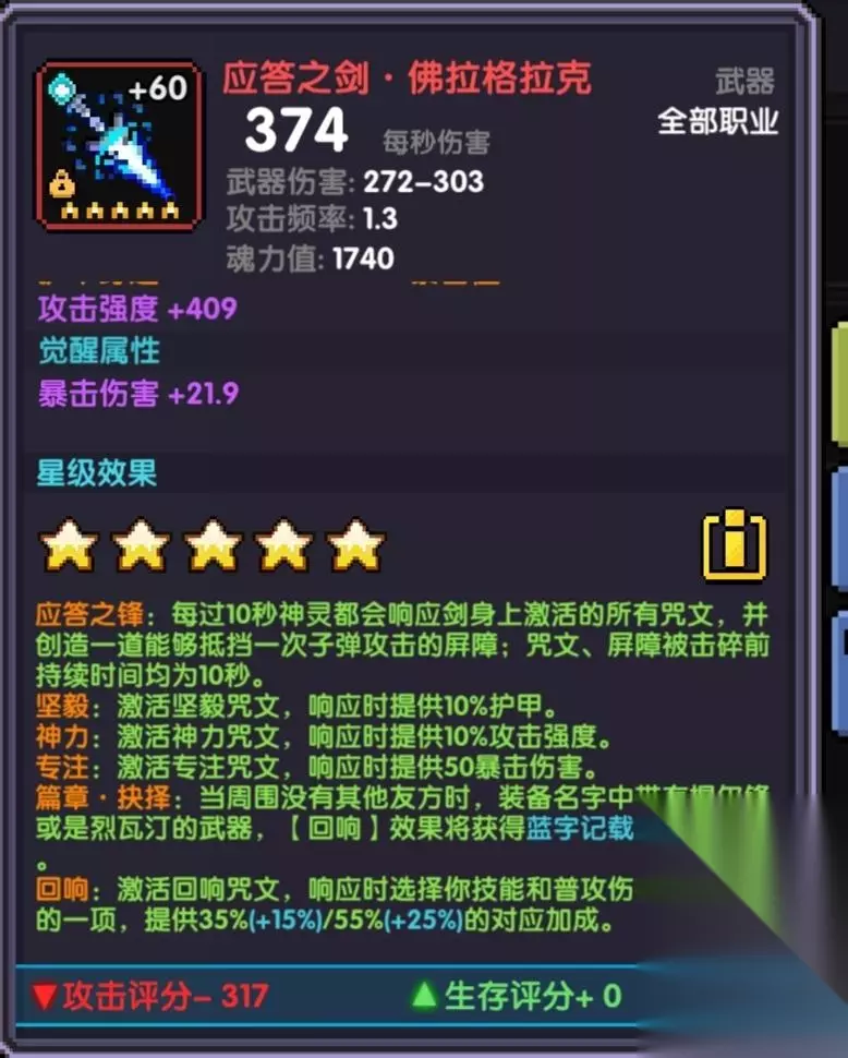 这是我们玩恶魔战必须最优先升到5星的魔女武器(绑定主手) 并且攻速需要达到2,我们武器攻速110,宠物羁绊提供15,那么还差75,这里有两种带法: 第一种是带双速卡60+攻速,带一个游侠魂珠,然后星盘区域1带风种子,就可以直接2 第二种只需要一张主属性攻速的魂卡40攻速,带百裂的技能提供40攻速,就可以2攻速了