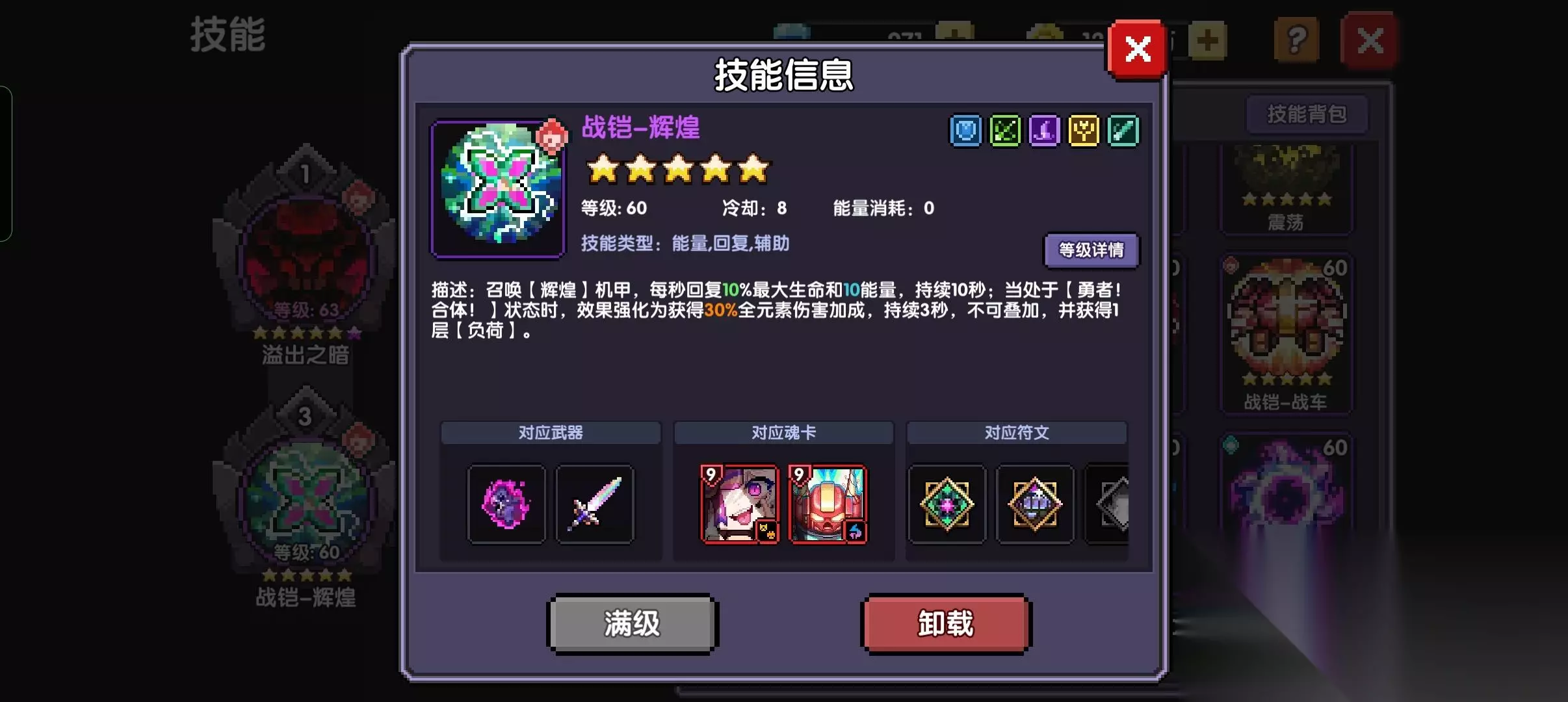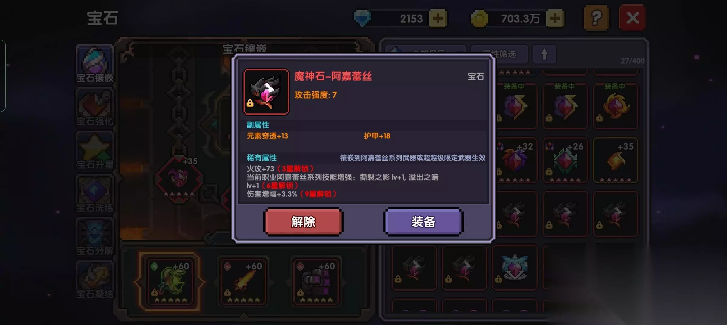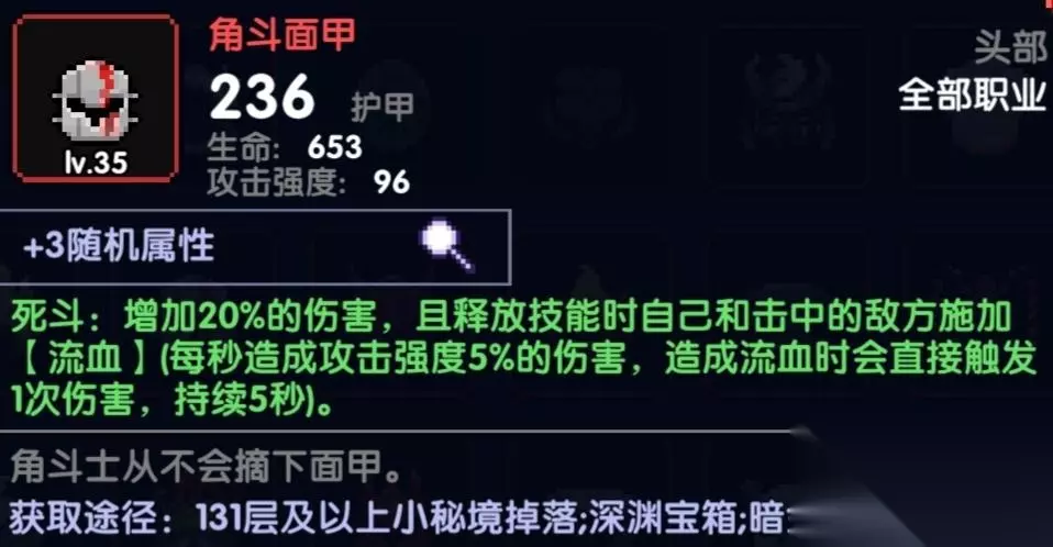 个人建议是升到3星激活每秒+18层数的那个效果就好了,没必要升到7星,因为需要非常多的资源,240碎片+80细沙,这个等后期在慢慢升上去就行了,前期升7星作用收益没有刷宝石和换装备这些提升来的快 三.装备 头部 词条:火攻/爆伤/任意