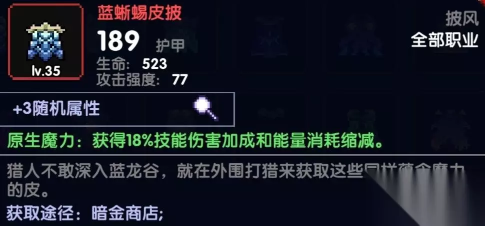 首个推荐的是蓝蜥蜴披风,18技能伤害和能量消耗减少,首选推荐无论是世界竞技场还是刷图都不错,战士也比较缺少技能伤害