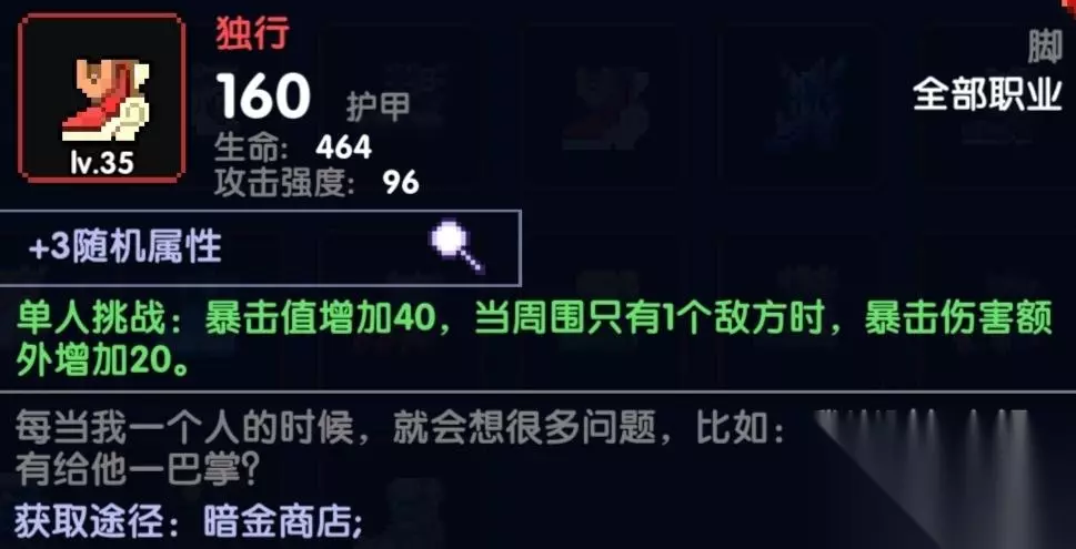 缺少暴击值直接穿上,不管有没有一个敌方,后面就算吃不到20爆伤也是值得带上的,因为前期缺少暴击值,早点凑到100%暴击伤害能翻好几倍