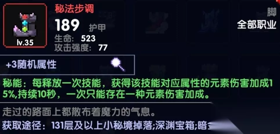 不说了看效果就知道了,打群怪亲爹戒指,配合熔火披风直接一个怪物就给你+25%火伤,就知道有多恐怖了把,可以达到瞬秒群怪的效果 鞋子 属性:火攻/穿透/任意