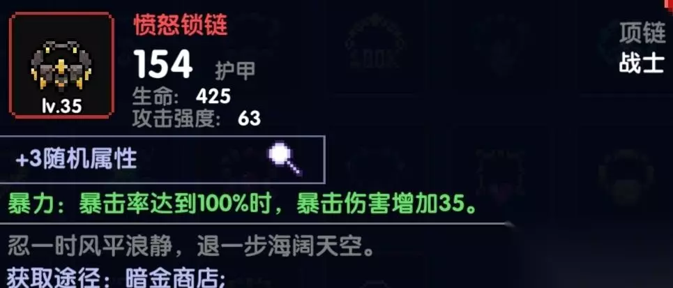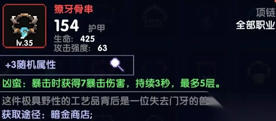 穿透缺少的,可以直接上这个,这个效果很直接直接加穿透500,打大秘境或者刷图穿透不够,输出乏力可以用这个来弥补 项链 属性:穿透/火攻/暴击值