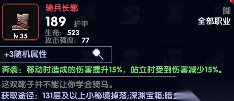 目前战士最强鞋子,30%全伤不讲道理,重点提醒,蓝上限最好100+配合企鹅宠物,再用保险一些(双神话需要注意如果带了蓝量上限在100以下谨慎带)