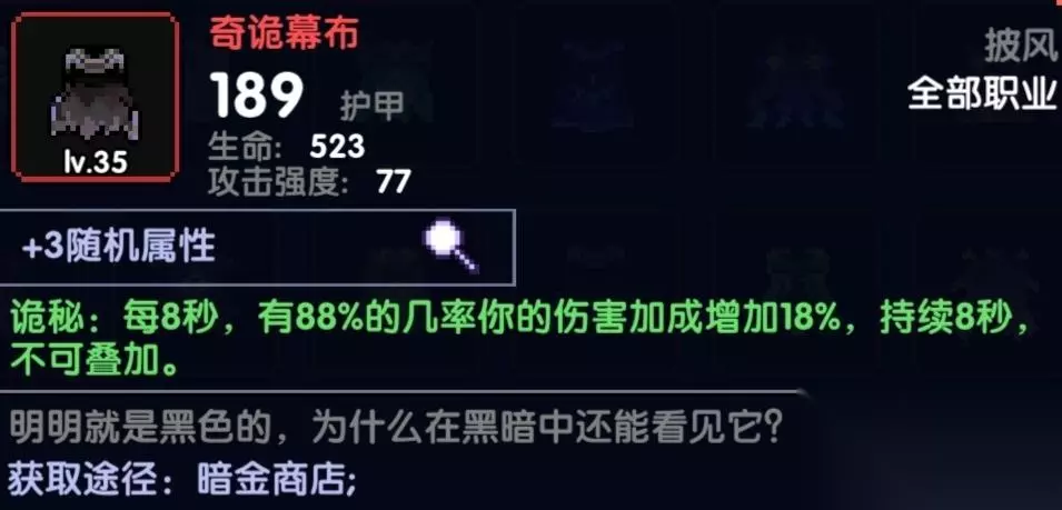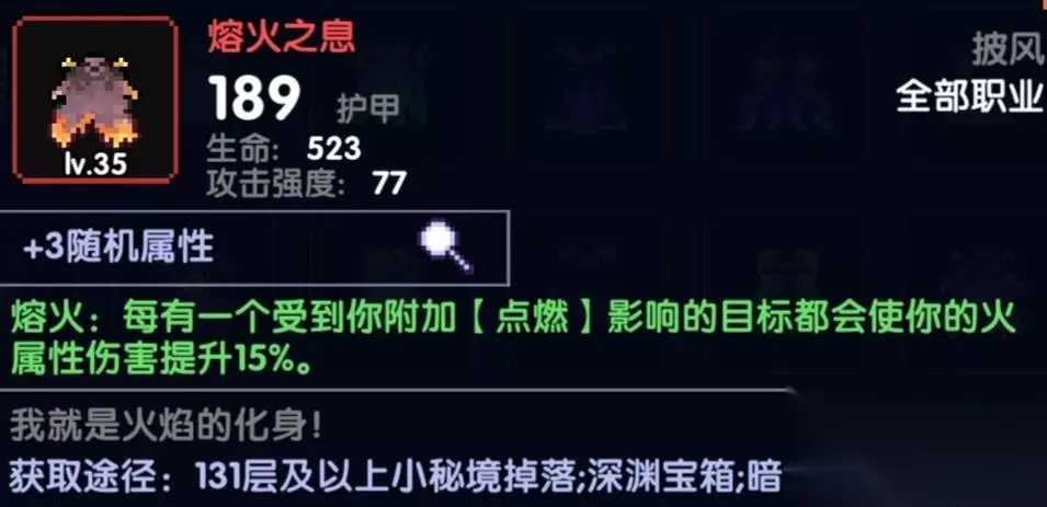 也称作赌狗披风,不过基本上是全程触发,除非你是非洲来的,18%全伤还是比较香,如果有这个可以先过渡 胸甲 属性:火攻/暴击值/任意