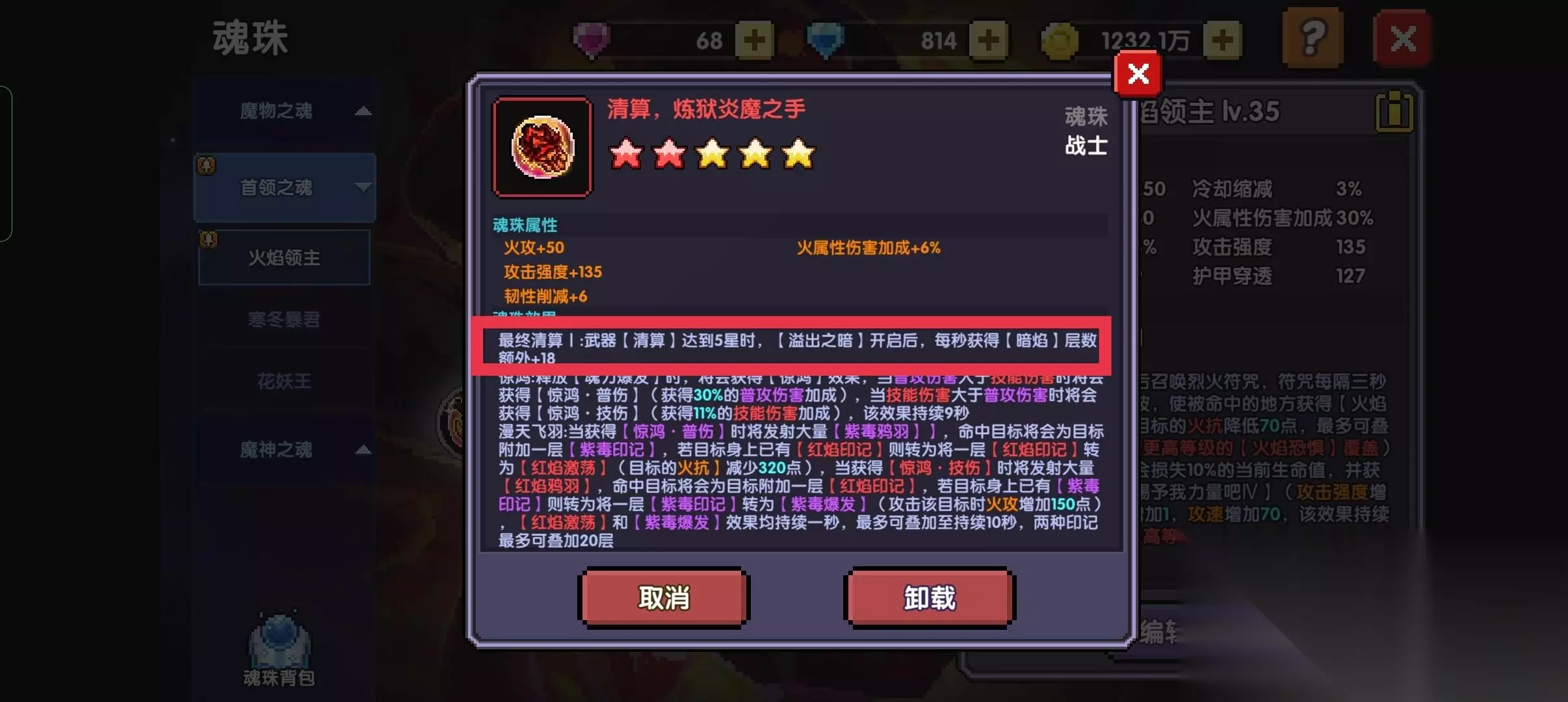 箭头为必须安装阿米魔女魂珠,□则是放你现在玩的魔女魂珠,可以同时激活阿米魂珠和新火魂珠效果,?起来的5个是自由搭配的,这里推荐世界带5蛇女7星的(5*7.5%首领),或者带其他火系魂珠加火攻,建议火系魂珠带牧师的(2%技能伤害) 十.魂力