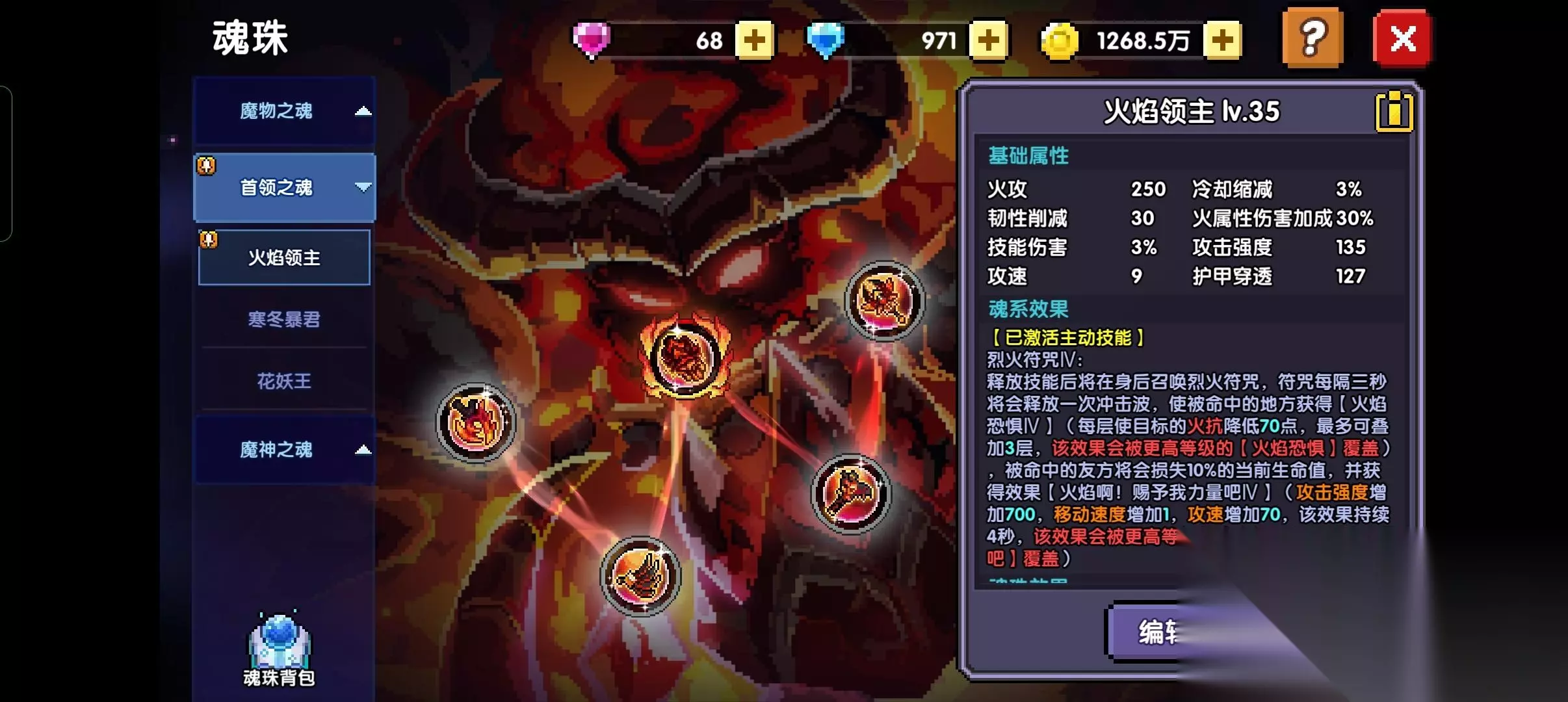 不要像我一样,打boss就主魂珠+4蛇女(+20首领),平常就主魂珠+4火系魂珠就行,有能力的就搞4火系牧师魂珠,因为牧师魂珠都是+技能伤害的,没能力就不要做了,安心做蛇女魂珠,首领伤害加成可以三系通用(木系加成更高) 8.18号出了阿米魂系