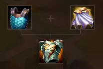 (3)救赎=女神之泪+巨人腰带 每过5秒治疗1格内的友军们15%的已损失生命值。此外,这些友军们所受的群体目标伤害还会降低25%,持续5秒(伤害减免不会叠加)。[光环类装备]