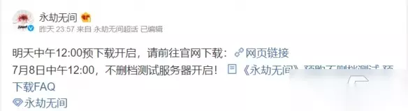 据官方消息称,7月8日中午12点,不删档测试服务器开启。 所以7月8日中午12点,游戏服务器会正式开启,届时玩家就可以登陆游戏开始游玩了。 不过刚开服肯定服务器被挤爆,上不去的玩家需要耐心等待服务器压力减轻。 预下载时间 游戏于7月7日已经开始预下载,玩家在官网可以提前下载游戏,这样在游戏开服时就可以准时进入游戏了。