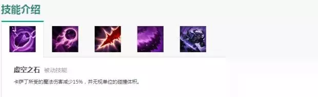 被动技能:受到的魔法伤害减少15%,这让我们对抗ap英雄天生的优势,被动的减魔法伤害是独立于魔抗额外计算的,因此即便对面出法穿装备也对此被动无影响。无视碰撞体积使我们走位不会被小兵,敌方,队友所卡位,让我们更加灵动。