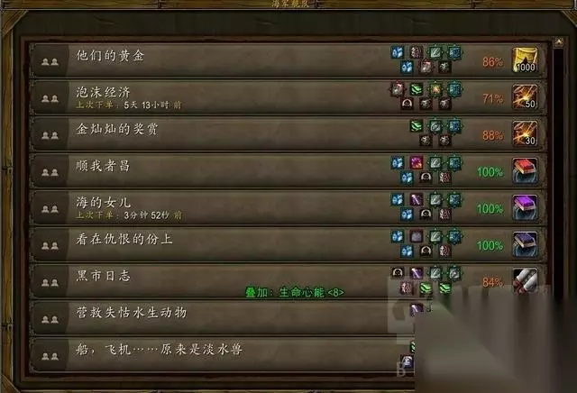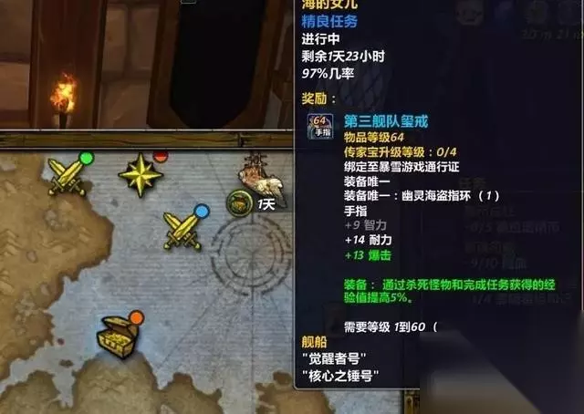 如图所示,一艘航母+一艘驱逐,并不需要觉醒号,船员用亡灵(人类)或者熊猫人,亡灵和熊猫人都是加成功率的,区别是亡灵是固定加成功率,而熊猫人是对于“长时间任务”增加成功率,而传家宝任务刚好是“长时间任务”(亡灵在联盟对应的是人类);船的装备要求两艘都按望远镜,一艘按真铁舵,一艘按邪能烟幕,此时成功率就达到了100%。 至于你们问什么时候刷新这个传家宝任务? 我的答案是看脸,没有其他任何技巧,我曾连续一周把地图上所有任务都清光,也没刷新过,后来只是每天上去瞄一眼看看有没有刷新,结果就出了。有人可能说,这么多任务,你怎么可能都清光?这里给你们安利个黑科技 请看下图: