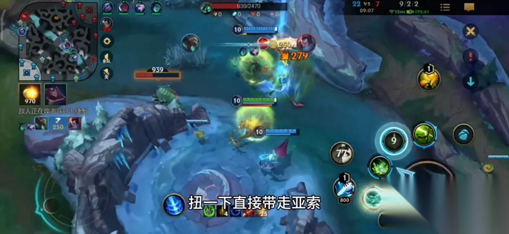 然后边也是直接6级又来一遍,回趟家我又来一遍能又怎么样,我看到盲僧过来了这边扭一下帮寒冰挡一下,记住了一定要帮挡的。有的人真的是操作和意识非常好,他习惯性的躲,这时候你要想清楚要不要帮队友挡,控龙真的是比较困难的。